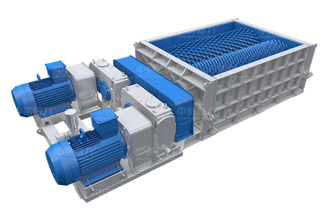 雙齒輥破碎機(jī)在工作時(shí),物料進(jìn)入破碎腔,通過(guò)高速旋轉(zhuǎn)兩齒輥對(duì)物料進(jìn)行剪切、擠壓、拉伸等作用對(duì)物料進(jìn)行破碎,齒輥中心距三擋可調(diào),保障出料粒度。