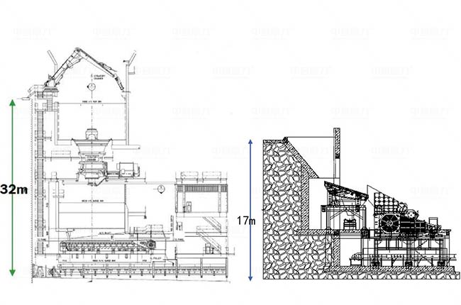 傳統(tǒng)旋回破和臥式旋回破基礎建設對比圖