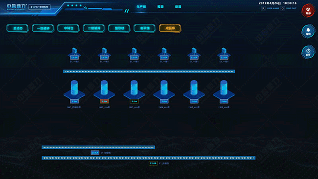3、石料生產(chǎn)線生產(chǎn)能力及各類規(guī)格的成品石料的產(chǎn)量、日/周/月累計(jì)產(chǎn)量、裝置工作負(fù)荷、運(yùn)行時(shí)間等數(shù)據(jù)的實(shí)時(shí)監(jiān)測(cè)解析;