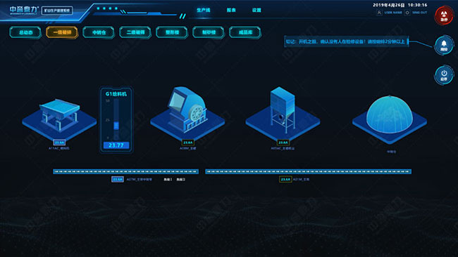 對(duì)礦山喂料機(jī)、破碎設(shè)備、制砂設(shè)備、篩分設(shè)備、輸送、砂石分離器等各設(shè)備加裝有傳感裝置,可以實(shí)現(xiàn)實(shí)時(shí)監(jiān)控設(shè)備運(yùn)行狀態(tài),了解各設(shè)備的電流、電壓、處理量等數(shù)據(jù),可通過(guò)PC端或礦山管家APP迅速了解整個(gè)生產(chǎn)線設(shè)備運(yùn)行狀態(tài)。