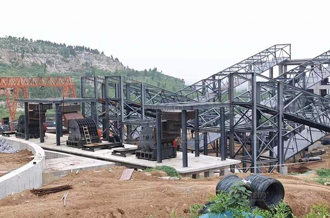設(shè)備配置:DLZG2560振動給料機、DLPCZ2125重型錘式反擊破碎機、DLPC1622整形式破碎機、DL3YKZ3680振動篩、皮帶輸送機等設(shè)備