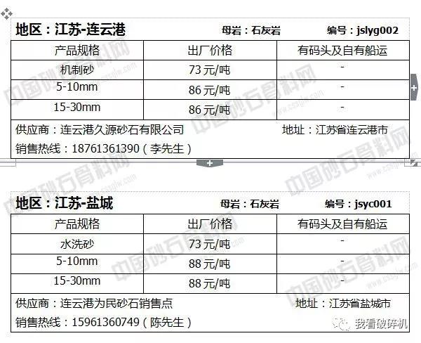 江蘇地區(qū):蘇錫常砂石價(jià)格普遍下調(diào)2元/噸,連云港砂石價(jià)格相對(duì)持平,可能會(huì)有1元/噸左右的波動(dòng)幅度。