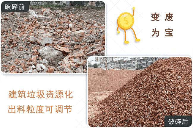 建筑垃圾中較多的就是混凝土塊了,是路面混凝土塊,這些混凝土塊能夠干什么呢?怎樣發(fā)揮它的剩余價值?能夠用一臺建筑垃圾粉碎機做出粉碎,制成不同大小的小石子或砂料,制作環(huán)保磚、復合骨料等,又一次運用于建筑、公路、建設(shè)基礎(chǔ)設(shè)施等。