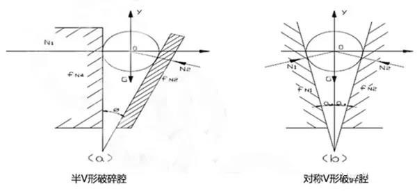 V形腔結(jié)構(gòu)使實(shí)際進(jìn)料口寬度與名義進(jìn)料口寬度相一致,并且更容易排料,相對來說不易發(fā)生堵料現(xiàn)象,不易蹦料,更深的破碎腔,無死區(qū),破碎效率更高。
