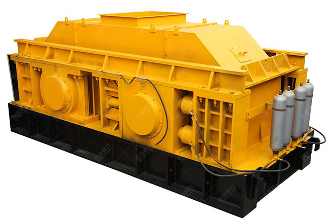 雙輥式破碎機(jī)主要由不變和活動(dòng)加工輥、壓緊和控制系統(tǒng)和帶動(dòng)系統(tǒng)等部分構(gòu)成, 作業(yè)時(shí),石子從給料口進(jìn)入機(jī)體內(nèi),經(jīng)過(guò)圓柱形的兩輥對(duì)石子擠壓沖擊、揉搓、研磨加工的影響,使石子得以被加工,碎后的成品從底架下面排出。