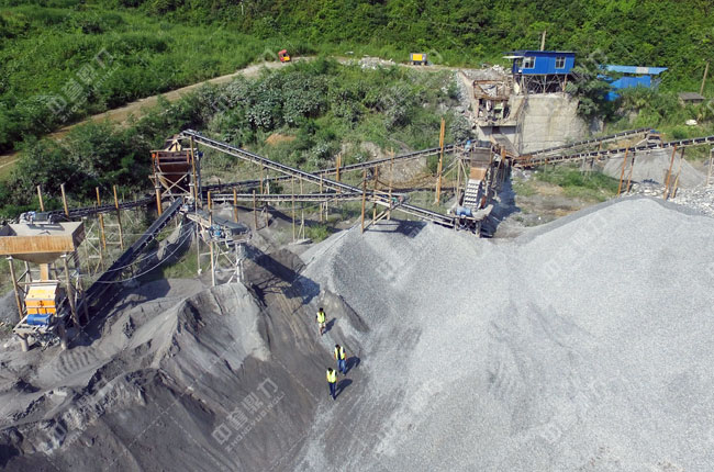 該生產(chǎn)線投產(chǎn)時間是2013年6月,主要生產(chǎn)0—30mm混合料、10—20、10—30mm的石子、瓜米石、石粉等石料,日產(chǎn)量可達3000噸,成品石料應(yīng)用于水泥廠及混凝土攪拌站。