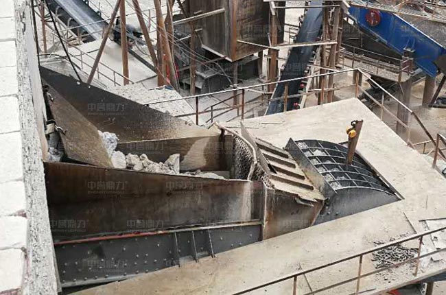 該項目位于廣西來賓,2017年9月投產(chǎn),屬中譽鼎力承建,采用兩段破碎工藝(重錘破+整形破),主要生產(chǎn)05、12、13等多種規(guī)格的石料,供當?shù)鼗A(chǔ)建設(shè)、混凝土攪拌站等使用。