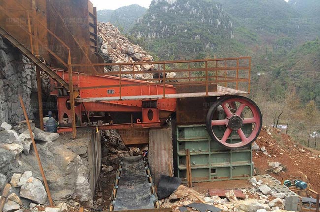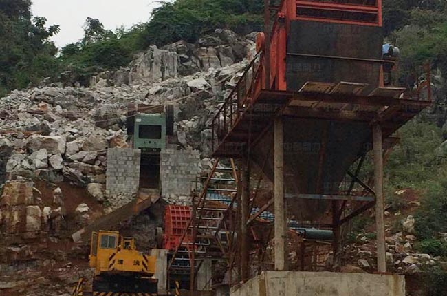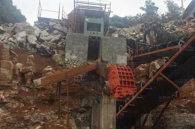 該項目位于廣西河池,選用時產(chǎn)100-160噸的PCZ1308重錘破碎機做二破使用,一臺4層YK2260振動篩用于分選4種不同規(guī)格的石料。