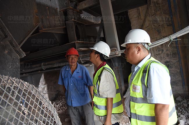 2017年8月鼎力售后萬里行來到楓林采石場溝通生產(chǎn)線運營情況