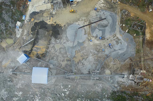 兩道篩分:PCZ重錘反擊式破碎機(jī)破碎后的石料,通過皮帶機(jī)送進(jìn)頭道曬分機(jī)組進(jìn)行篩分,會(huì)篩分出混合料,成品骨料及需要返回破碎機(jī)的石料;混合石料篩選通過二道篩機(jī)篩分,符合要求的通過成品皮帶機(jī)送至成品料堆;