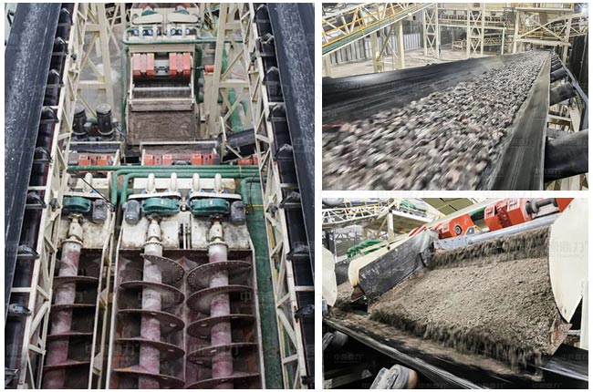 山東源希礦業(yè)成品料用于高速、高鐵等項(xiàng)目,對(duì)成品料品質(zhì)及潔凈程度要求較高,采用濕法制砂方式,配有水循環(huán)處理系統(tǒng),除兩臺(tái)1622整形錘式破碎機(jī)及3YKZ3070振動(dòng)篩設(shè)備外,水洗砂環(huán)節(jié)配置的是功率消耗小、洗凈度高的螺旋洗砂機(jī)及配套脫水篩。