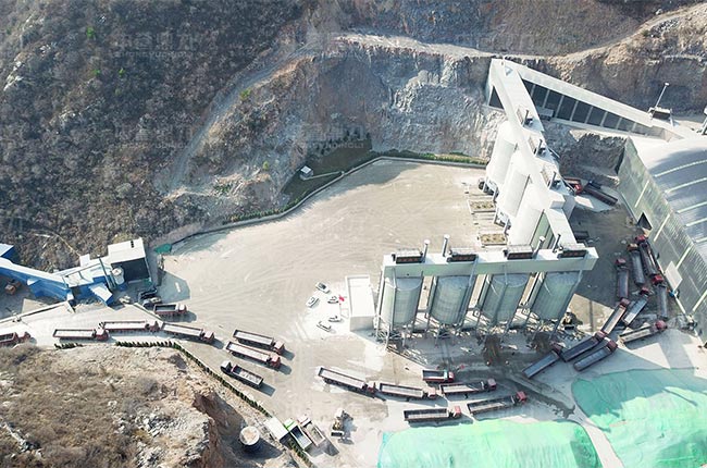 該項目主破采用PCZ1615重錘式破碎機,整形破,制砂機及整套礦山設(shè)備,整個工藝進行了封閉式環(huán)保設(shè)計,還配置了自動裝車系統(tǒng),司機刷卡后,散裝機放料進行自動裝車,大大提高了裝車速度。