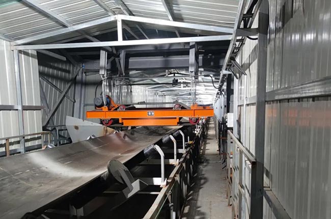 A:直接采用箱式皮帶輸送機,也可以通過加裝皮帶廊道抑制粉塵,在落料點加裝干霧抑塵裝置。
