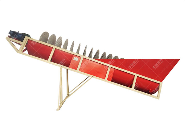 螺旋洗沙機工作時,電機通過V型皮帶、減速機、齒輪減速后驅(qū)動葉輪緩慢操作,砂石有送料槽進(jìn)入洗槽中,在葉輪的驅(qū)動下翻滾,并互相碾磨,除去覆蓋砂石表面的臟東西,此時傷害包覆砂粒的水汽層,以利于脫水;此時加水,形成強大水流,立即將臟東西及比重小的異物帶走,并從溢出口洗槽排出,完畢清洗影響,干凈的砂石由葉片帶走,后砂石從操作的葉輪倒入出料槽,完畢砂石的清洗影響。