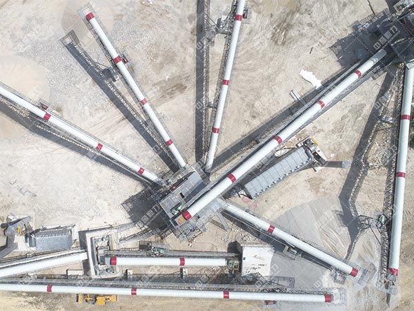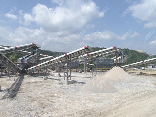 先,巖石由喂料機(jī)均勻地送進(jìn)碎石機(jī)進(jìn)行破碎,然后,產(chǎn)成的粗骨料由皮帶運(yùn)輸機(jī)運(yùn)輸至反擊式破碎機(jī)進(jìn)行深度破碎,整型破碎后的巖石進(jìn)礦山振動(dòng)篩 篩選分級(jí)出不同性能的石子,不粒度合格的石子返料進(jìn)反擊式破碎機(jī)又一次破碎,大塊巖石經(jīng)料堆由振動(dòng)喂料機(jī)均勻地送進(jìn)顎式破碎機(jī)進(jìn)行初級(jí)破碎,初級(jí)破碎后的巖石由皮帶運(yùn)輸機(jī)送入反擊式破碎機(jī)進(jìn)行深度破碎;整型破碎后的巖石由皮帶運(yùn)輸機(jī)送進(jìn)礦山振動(dòng)篩 進(jìn)行篩選分級(jí),篩選分級(jí)出多種不同性能的石子,粒度合格的石子由成品皮帶運(yùn)輸機(jī)送往砂石堆;不粒度合格的石子由皮帶運(yùn)輸機(jī)返料送入反擊式破碎機(jī)進(jìn)行又一次破碎,形成閉路多次循環(huán),成品粒度可根據(jù)用戶的需要進(jìn)行組合和分級(jí),為保護(hù)環(huán)境,可搭配輔助的除塵機(jī)械,
