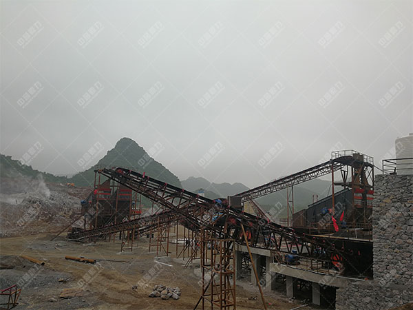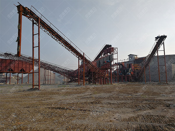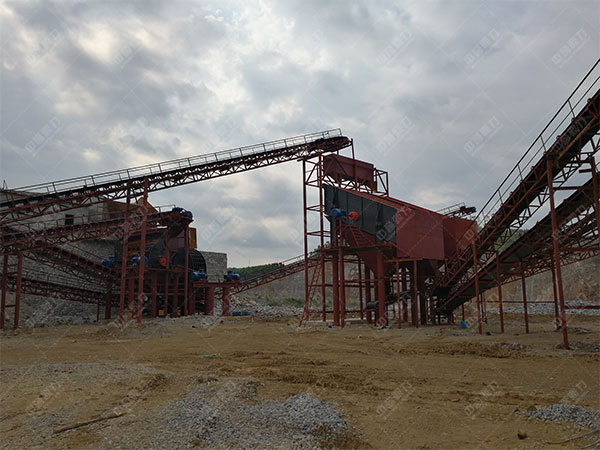 沙石生產(chǎn)線中的石頭由振動送料機均勻地送回重型鵝卵石制沙機進行粗碎,粗碎后的石頭由皮帶運輸機送入到沙石生產(chǎn)線中的制沙機進行深度破碎,整型破碎后的石頭被運輸?shù)较瓷硻C進行洗滌,符合成品粒度要求的石頭被送入砂石洗選設(shè)備清洗,清洗后由成品皮帶運輸機輸出即為成品;未符合成品粒度要求的石頭從篩機返回制沙機再次破碎,形成閉路多次循環(huán),成品粒度可按客戶的要求進行組合和分級,假如選擇干法生產(chǎn)方案,可配置粗細粉分離機和除塵設(shè)備。